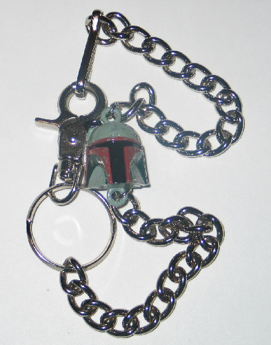 This is the image of Boba Fett’s helmet/mask in a heavy duty solid 3-D depiction attached to a 16″ chain that can be used to attach to a wallet or to hold keys. The head measures 1 1/8″ thick and stands 1 1/8″ high. These have limited distribution and have been stored in a smoke and pet free environment.