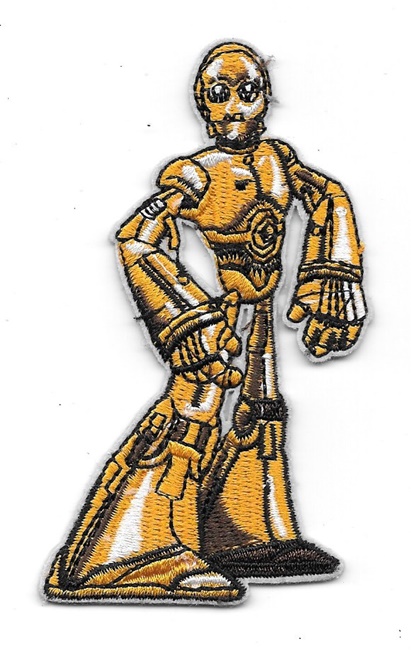 This unused embroidered patch features the 4″ high die-cut figure of the droid C-3PO as seen in all of the Star Wars movies. It comes with a glue backing for easy application to a cloth surfaced and is stored in a smoke and pet free environment.