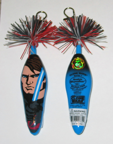 This is the Anakin Skywalker image as a Kooky Pen collectible. It is number 1 in the Clone Wars series and comes from the first series release. These are limited hand painted wooden pens with a Kooky top and keychain attachment with the figure base measuring 3.5″ high. It has been stored in a smoke and pet free environment.