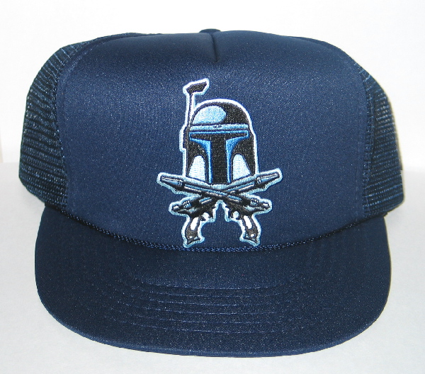This is a BLACK cloth adjustable baseball style (meaning a round bill) hat (made of 65% polyester and 35% cotton) with a 100% polyester mesh back. It has the Star Wars Clone Wars Jango Fett Pistols patch attached to the front. The photo is for identification of the hat style and the patch. The color of the hat WILL BE the one stated in the title and the description. This is a new, never worn hat stored in a smoke and pet free environment.
