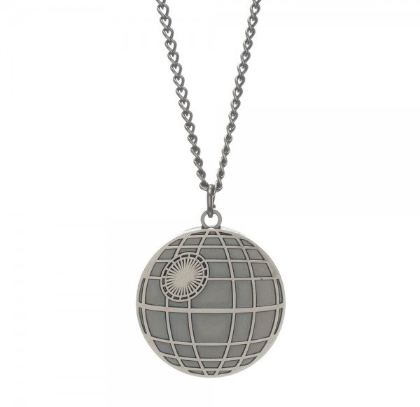 This is a licensed enamel grey metal necklace in the image of The Emperor’s Death Star as seen in the classic Star Wars movies. It has a raised image and measures 1.375″ across with an 18″ chain. It is in mint, unworn condition, in a sealed package and stored in a smoke and pet free environment.