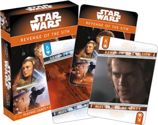 Ignite your strengths and challenge your master with this deck of EPISODE III: REVENGE OF THE SITH playing cards featuring 54 exclusive images that saw how fear led to hate and gave birth to an empire. This is a new, unused, original shrink wrap set in mint condition been stored in a smoke and pet free environment.