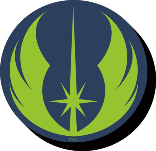 This is a licensed chunky 3-D magnet measuring approximately 3.125″ wide featuring the image of the green and blue Jedi Knight logo as seen in the classic Star Wars movies. This is a new, never used magnet made of composite materials, stored in a smoke and pet free environment.