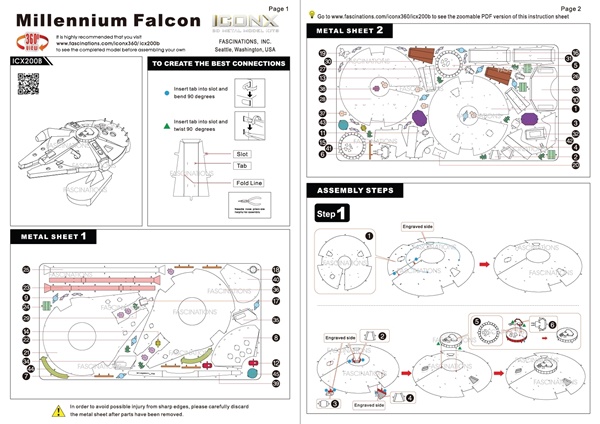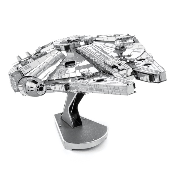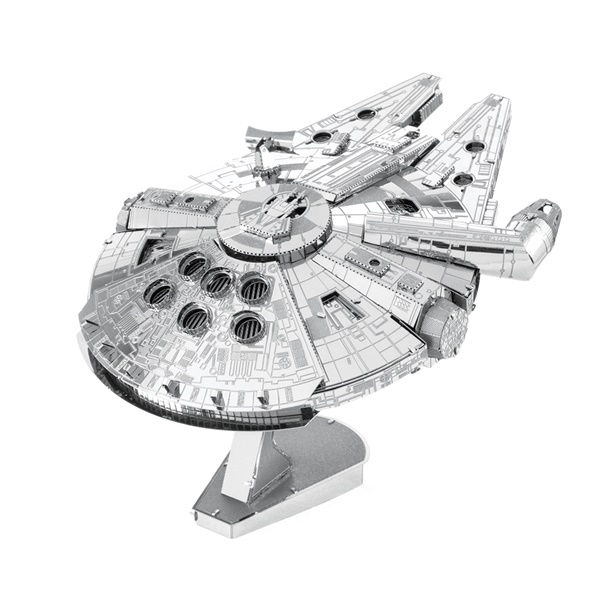 This amazingly detailed model starts as 4″ square sheets and finishes as a 3-D model. It is approximately 4.25″ long by 2.75″ high when assembled and this one features the oversized version of the Millennium Falcon as first seen in the classic Star Wars movies. A legendary starship despite its humble origins and deceptively dilapidated exterior, the Millennium Falcon has factored into some of the Rebel Alliance’s greatest victories over the Empire. Before Han Solo won it in a game of chance, it was owned by Lando Calrissian. Solo and first mate Chewbacca flew the Millennium Falcon into cinematic history. The sheets contain detailed laser etching for easy removal. Complete instructions are included to show you how to pop out the pieces, bend the tabs, and connect them at the attachment points with an average assembly time of 30-45 minutes. It has been stored in a smoke and pet free environment. We also offer an optional LED base or a Solar Spinner for better display of your model.