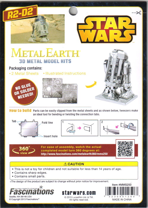 This amazingly detailed model starts as 4″ square sheets and finishes as a 3-D model. It is approximately 2.5″ x 2″ x 3″ tall when assembled and this one features the droid R2-D2 as first seen in the classic Star Wars movies. The sheets contain detailed laser etching for easy removal. Complete instructions are included to show you how to pop out the pieces, bend the tabs, and connect them at the attachment points with an average assembly time of 30-45 minutes. It has been stored in a smoke and pet free environment. We also offer an optional LED base or a Solar Spinner for better display of your model.