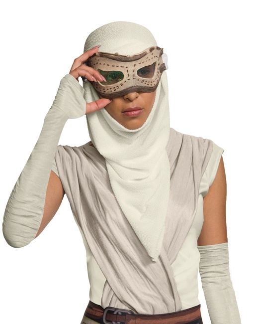 This is a licensed adult eye mask/goggles with a hood as worn by the mysterious new character Rey in the new Star Wars movie The Force Awakens. Produced by Rubies it is designed as a costume accessory. It is mint in its original packaging and is stored in a smoke and pet free environment.