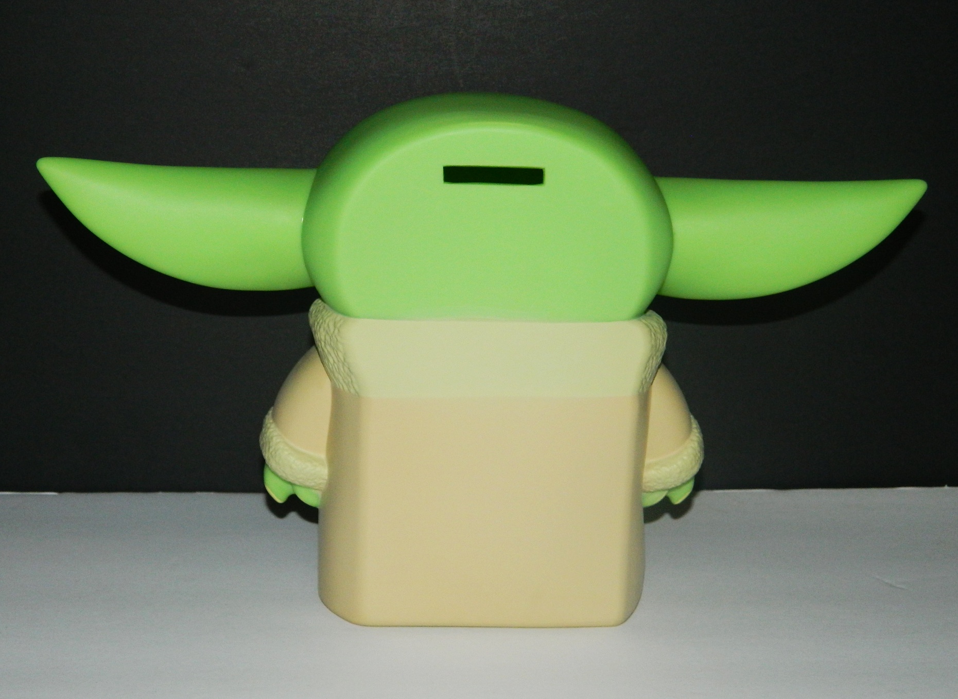This is a hard PVC rendering of The Child (baby Yoda) as seen on the Star Wars TV series The Mandalorian designed as a coin bank. It measures 7.75″ high x 12.5″ wide (ear to ear) with a coin slot on the back side of the head. Brand new, it is been stored in a smoke and pet free environment.