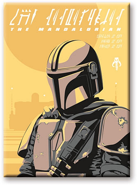 This is one of a series of licensed 2.5″ x 3.5″ refrigerator magnets that features images and phrases from The Mandalorian Star Wars TV series seen on the Disney Plus channel. This is a new, unused magnet stored in a smoke and pet free environment.