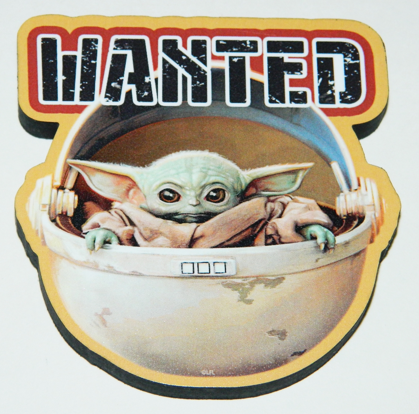 This is a licensed chunky 3-D magnet measuring approximately 3″ high featuring the image of The Child from the popular Disney + TV series The Mandalorian. This is a new, never used magnet made of composite materials, stored in a smoke and pet free environment.