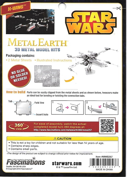 This amazingly detailed model starts as 4″ square sheets and finishes as a 3-D model. It is approximately 2.75″ tall when assembled and this one features a Rebel X-Wing Fighter as first seen in the classic Star Wars movie A New Hope. The sheets contain detailed laser etching for easy removal. Complete instructions are included to show you how to pop out the pieces, bend the tabs, and connect them at the attachment points with an average assembly time of 30-45 minutes. It has been stored in a smoke and pet free environment. We also offer an optional LED base or a Solar Powered Spinner for better display of your model.