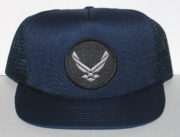 This is a BLUE cloth adjustable baseball style (meaning a round bill) hat (made of 65% polyester and 35% cotton) with a 100% polyester mesh back. It has the Space Command logo patch (a real Air Force patch) attached to the front. The photo is for identification of the hat style and the patch. The color of the hat WILL BE the one stated in the title and the description. This is a new, never worn hat stored in a smoke and pet free environment.