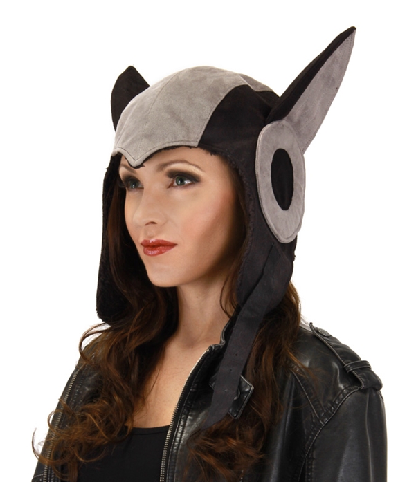 This is a black and grey ultra-suede SteamPunk AeroCat Aviator hat. Perfect for cat lovers and pilots alike, now anyone can be an aviator. Inspired by aviator hats of old and combined with a modern design, rule the skies in the AeroCat Aviator by elope. It is 100% polyester, with ultra-suede and has fleece and a metal buckle. Completed with stuffing and a paper lining and fits most ages 14+. It is new, sealed, unworn and has been stored in a smoke and pet free environment.