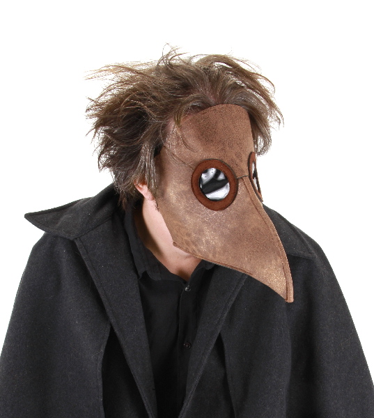 This is a light weight faux leather foam mask with an elongated beak and circular eyeholes in the style worn by the plague doctors in years past. It is perfect for costuming, especially for the popular steampunk genre, and comes with an adjustable elastic strap. It is mentioned in the latest Dan Brown novel Inferno. This is a new, unused mask stored in a smoke and pet free environment. We also have the inverness coat shown in the photo for sale also.