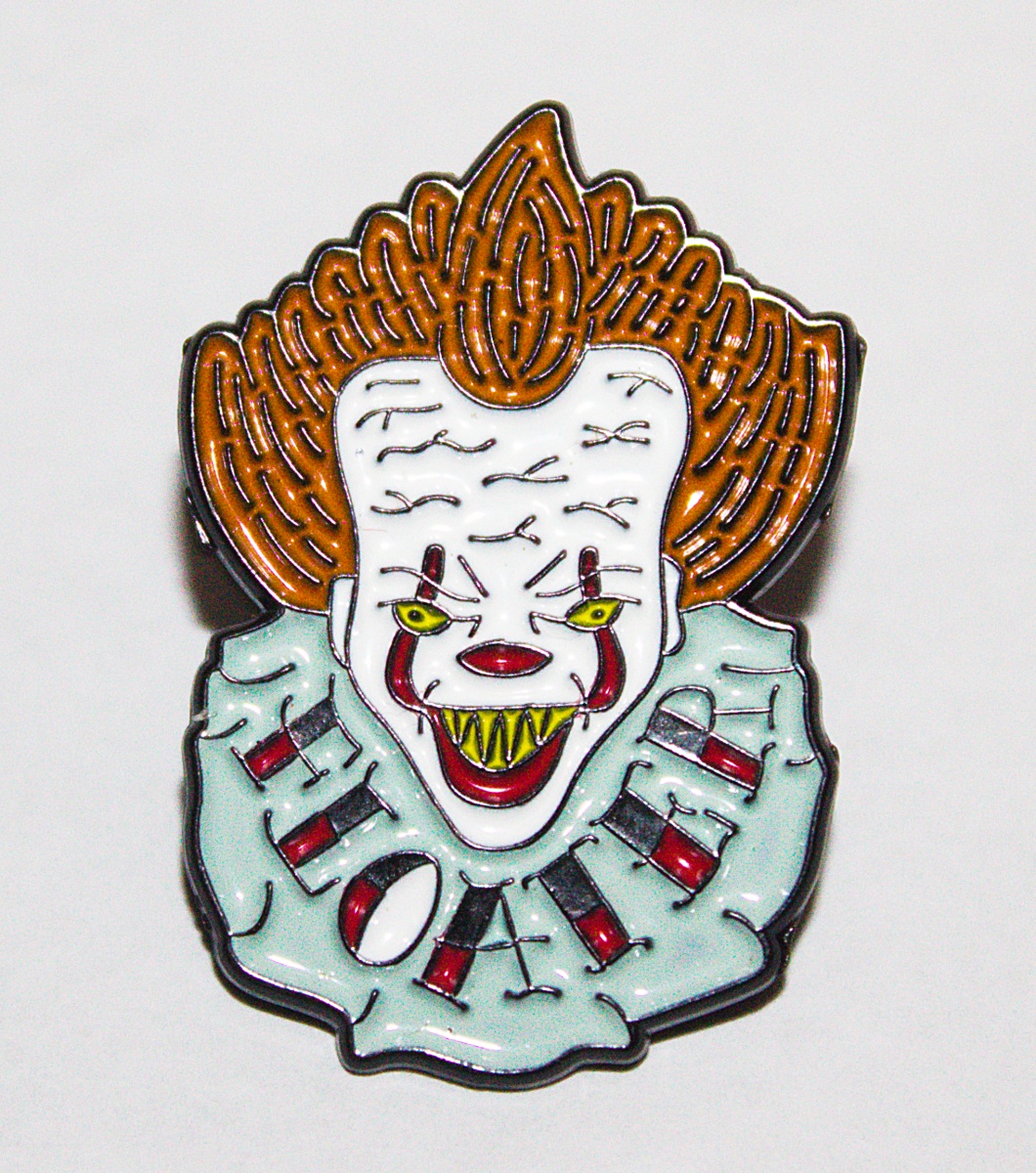 This metal enamel pin features the face of Pennywise baring his teeth from the movie Stephen King’s It. This mint, unused, pin measures 1.25″ high and it is stored in a smoke and pet free environment.