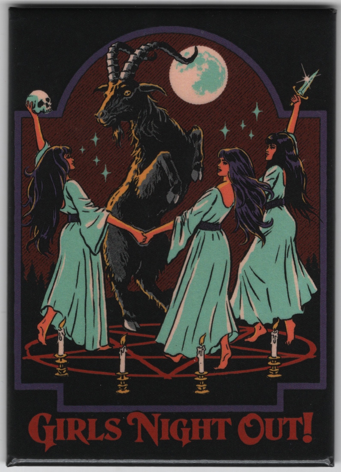 Steven Rhodes Humor Girls Night Out Dancing On Pentagram Refrigerator Magnet NEW