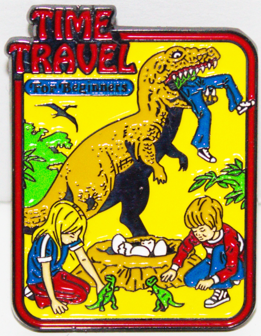 This is a 1.125″ wide x 1.5″ high new and unused die-cut metal enamel pin which features the artwork warped humor from the childhood of Steven Rhodes. It is a new, unused pin with two clutch backs that is stored in a smoke and pet free environment.