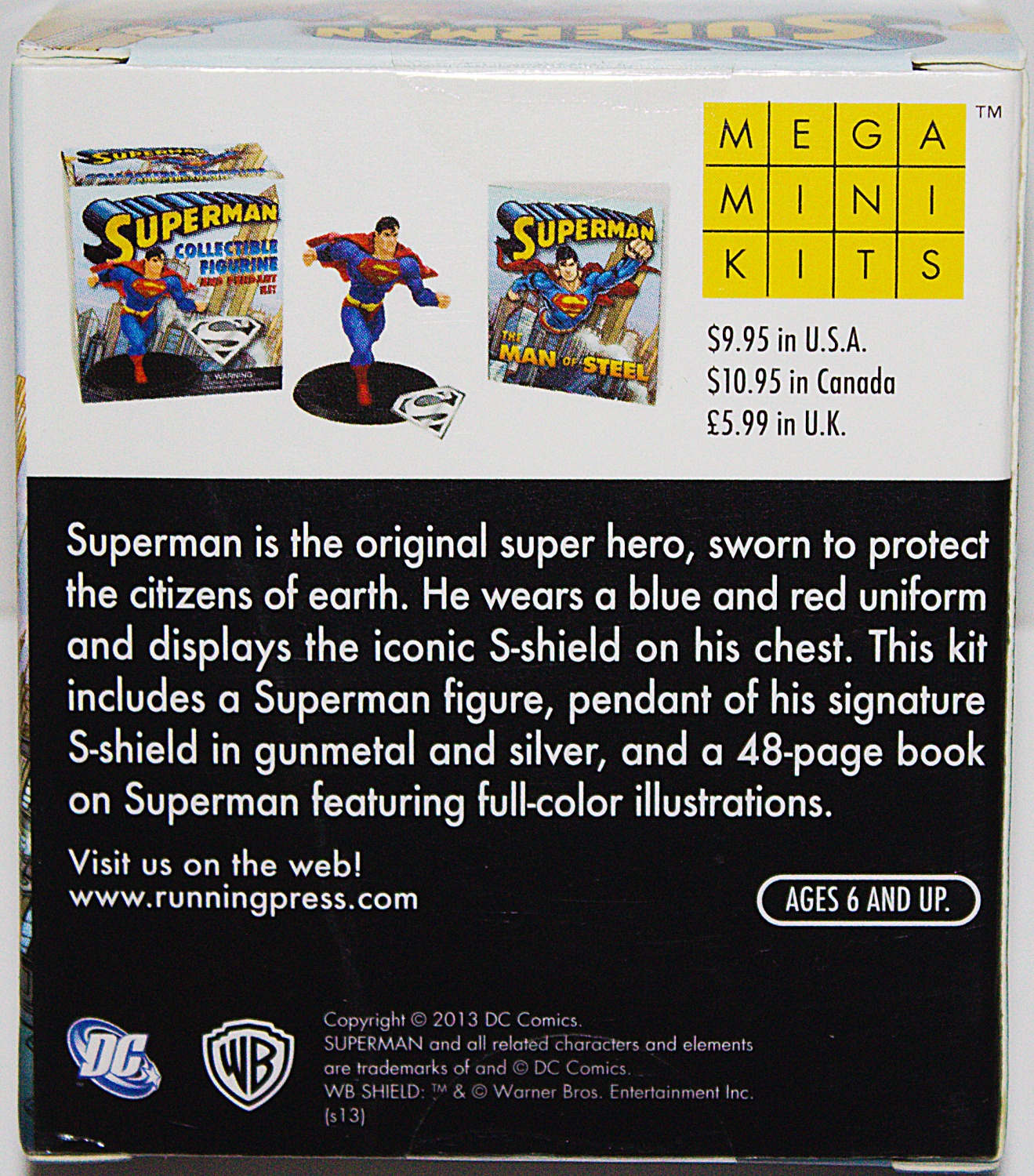 For fans of the ultimate Super Hero, this kit includes a Superman figurine, pin of the famed “S” symbol in gunmetal and silver, and 48-page book on Superman featuring full-color illustrations. This is a new, sealed copy that we purchased direct from the publisher and it has been stored in a smoke and pet free environment.