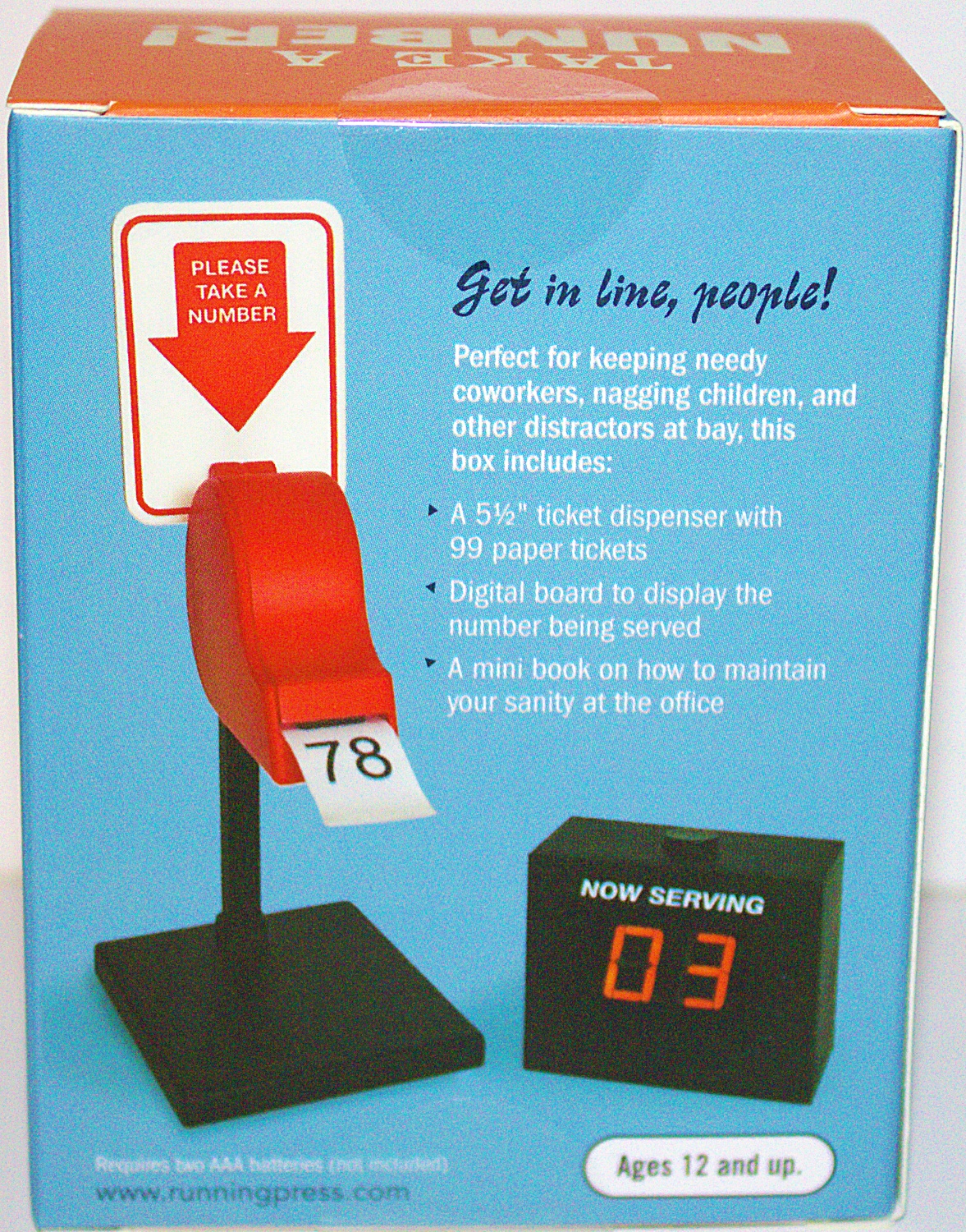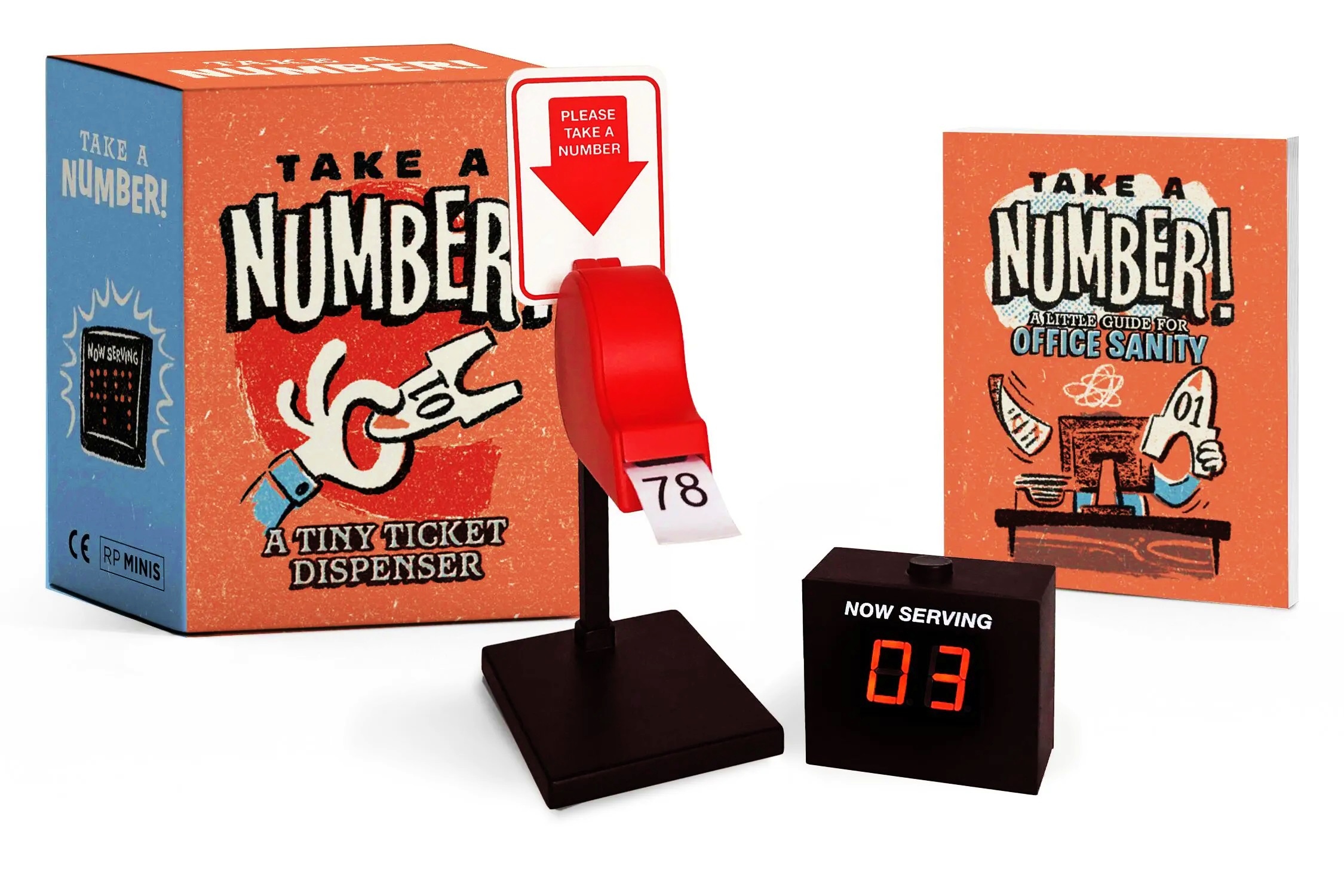 Next time you’re up to your neck in nagging requests, emails, and meeting invites, give your coworkers a (not-so-subtle) hint: Take a Number! Includes a mini butcher counter-style “take a number” system with 100 paper tickets, plus a digital number board to display the number currently being served. Alo enjoy an illustrated mini book outlining how to tackle common office distractions, like Carol from accounting asking if you saw last night’s episode of Dancing with the Stars. Whether it’s for your boss, the office White Elephant party, or your busy coworker’s birthday, this is a hilarious novelty item that’s sure to delight! As functional as it is funny and adorable, this tiny ticket dispenser might actually help you keep requests at bay. This is a new, sealed copy that we purchased direct from the publisher and it has been stored in a smoke and pet free environment.