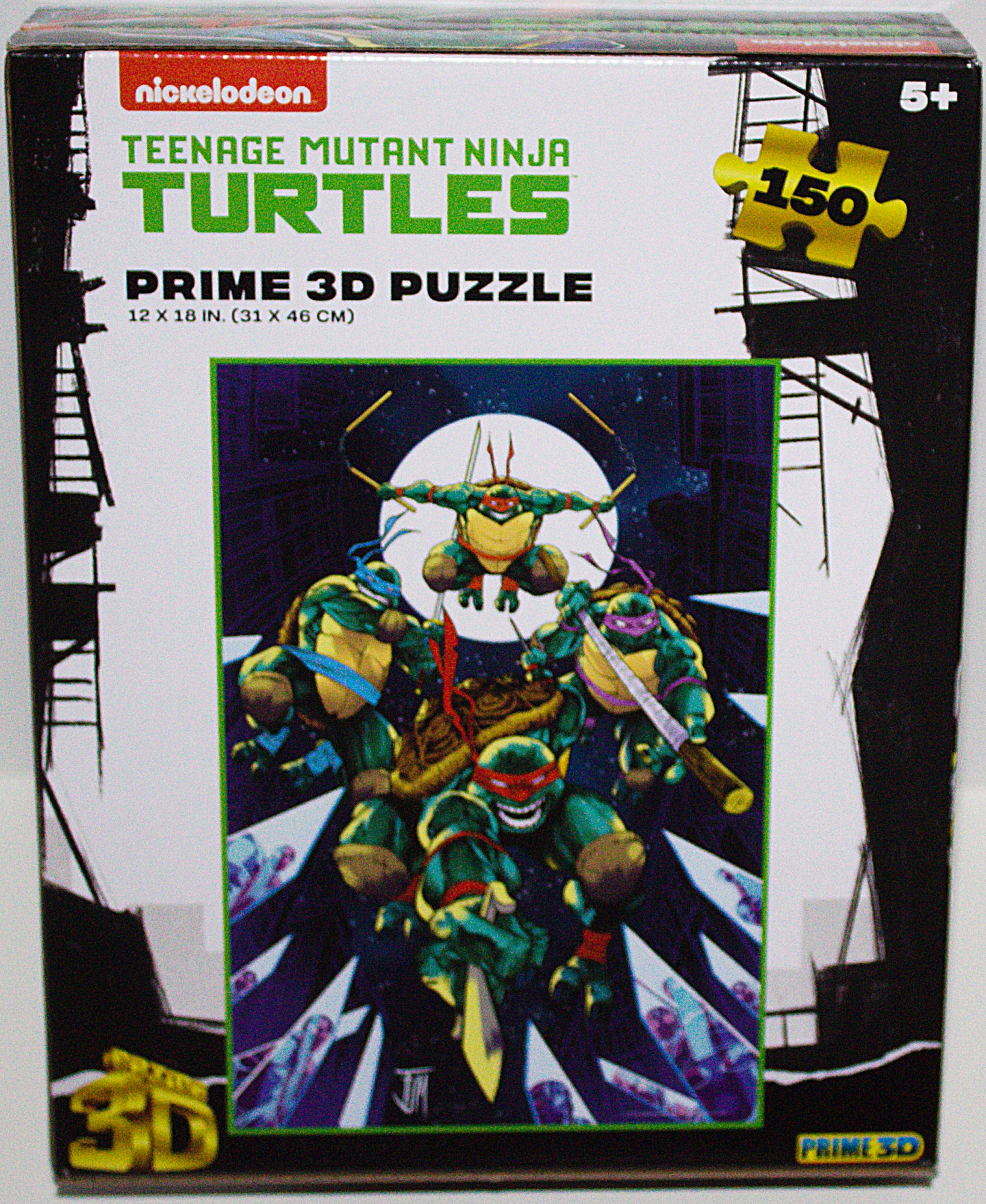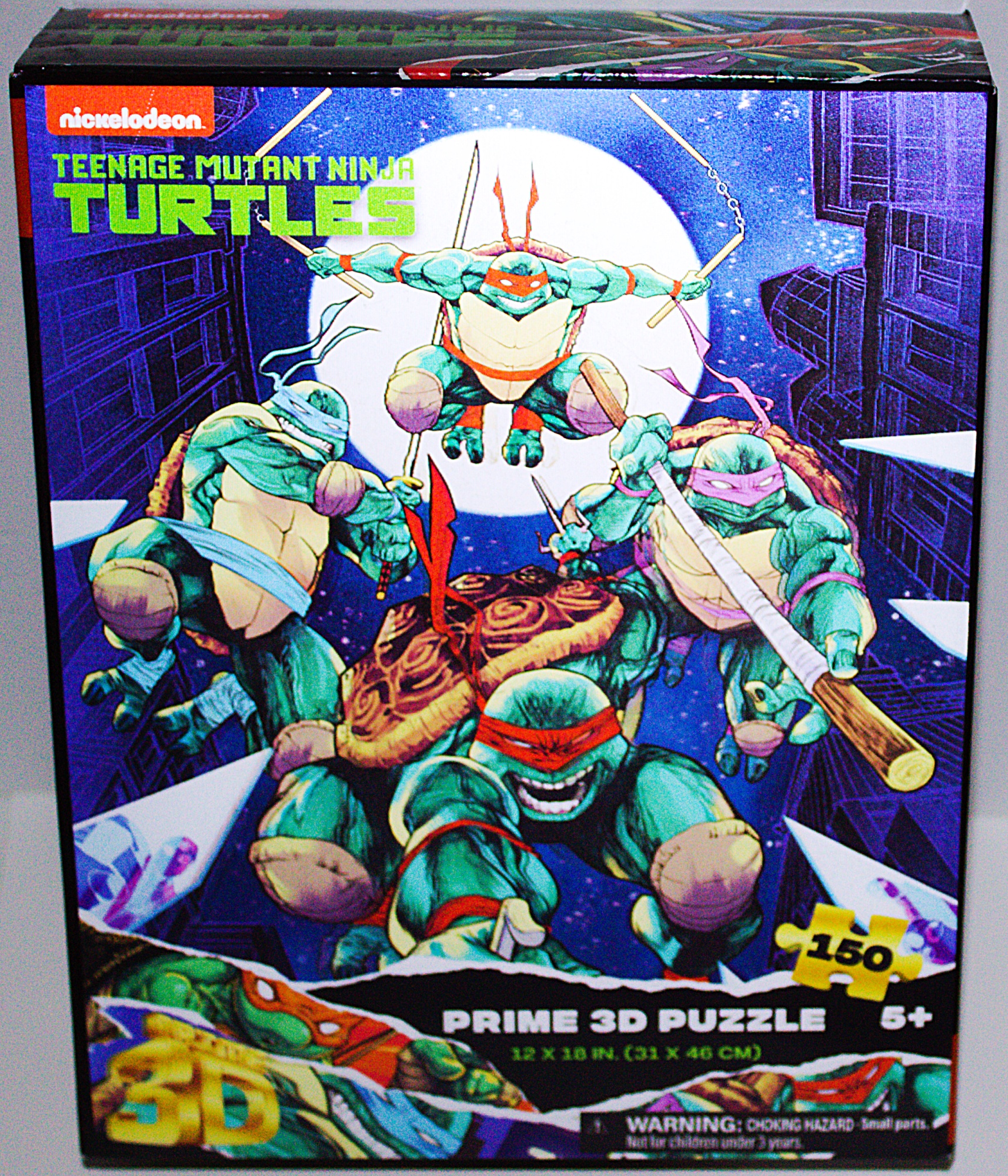 Produced by Prime 3D, this is a new, unused, sealed 150 piece 3D jigsaw puzzle featuring an image the Teenage Mutant Ninja Turtles leaping into action. This 3D Jigsaw Puzzle is perfect for fans of the popular Teenage Mutant Ninja Turtles franchise. With 150 pieces and a final size of 12″ x 18″, this puzzle offers a challenging and fun activity for all ages. The 3D format adds an extra dimension of excitement to the experience. It is stored in a smoke and pet free environment.