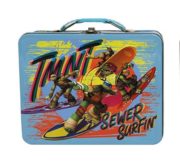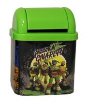 Produced in 2013, this is one of a set of three different 6″ high x 4 1/4″ wide metal tin round coin banks featuring the comic images of the Teenage Mutant Ninja Turtles. They are new, unused tin tote banks with a wrap-around design and an easy lift off lid. It is stored in a smoke and pet free environment.