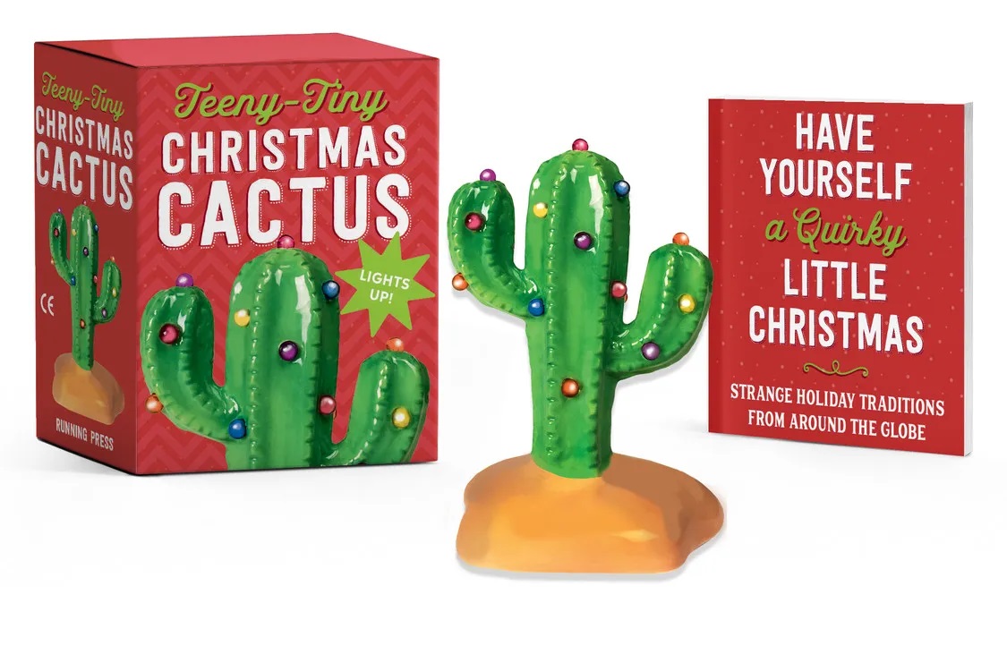Your grandmother’s ceramic Christmas tree has been given a modern, Southwestern facelift with the Teeny-Tiny Christmas Cactus! Showcase your holiday spirit with this prickly twist on the classic light-up ceramic tree, a fun new way to celebrate your favorite season. The adorable mini box includes: A 4″ ceramic cactus that casts a cheery holiday glow, an illustrated mini book exploring the fun, quirky ways people celebrate the Christmas season across the world. It’s the perfect addition to your desktop, mantle, or any place in need of a festive touch this Christmas! This is a new, sealed copy that we purchased direct from the publisher and it has been stored in a smoke and pet free environment.