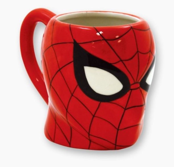 This is a new and unused red stoneware 16 ounce ceramic mug featuring the raised figure of the head of Marvel comics The Amazing Spider-Man as seen in the comic books and the movies. This mug ships in a full color gift box and is stored in a smoke and pet free environment.