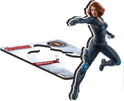 Produced in 2015, this is a licensed 10.75″ tall desktop standee featuring a photo image of Black Widow as a member of The Avengers for the new movie Age of Ultron. It is a pop out stand up protected in shrink wrap and is stored in a smoke and pet free environment.