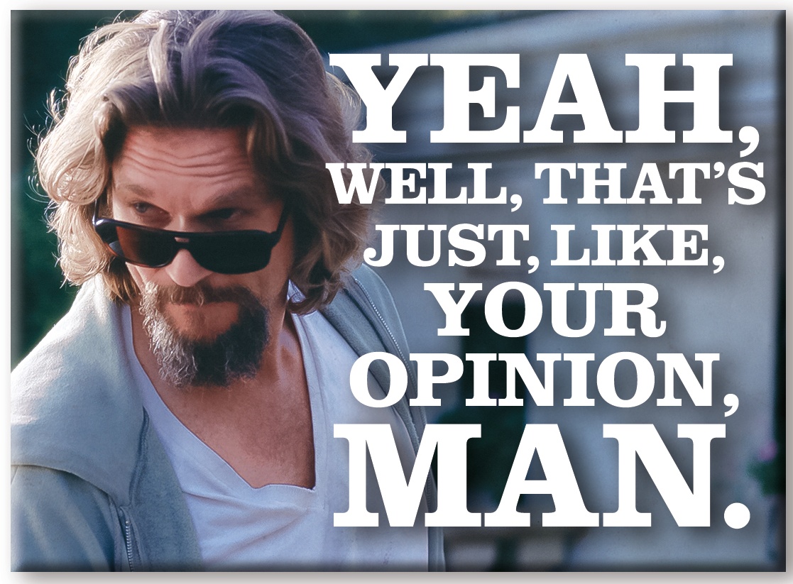 This is a licensed, large 2.5″ x 3.5″ magnet featuring images and phrases from the 1998 satirical crime comedy film the Big Lebowski. This Coen brothers’ film is a cult classic. Known for its offbeat and eccentric characters, quirky dialogue, and eclectic soundtrack, this film stars Jeff Bridges as Jeffrey, “The Dude” Lebowski, a Los Angeles slacker and avid bowler. This is a new, unused magnet stored in a smoke and pet free environment.