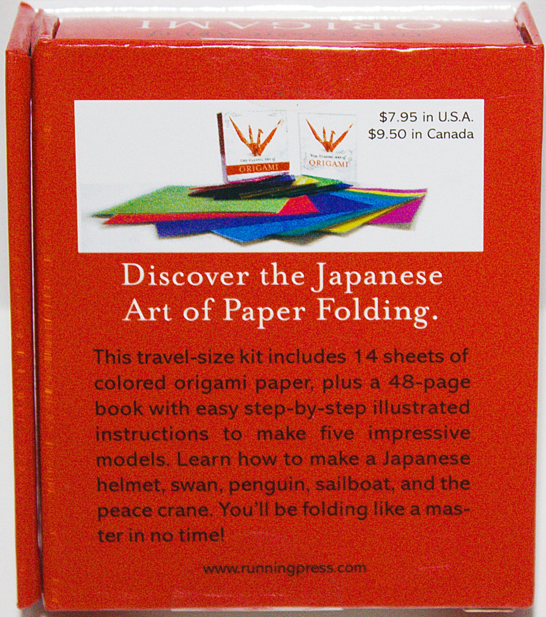 Folding paper—what a fascinating art! But forget about clunky origami books with complicated instructions. This little kit is packed full of travel-size origami basics, including fourteen colorful sheets of paper and simple instructions on how to create five beautiful origami designs—the Japanese helmet, swan, penguin, sailboat, and the classic crane. From kids who are fans of folding paper airplanes to adults who wish they can turn their piles of paperwork into entertainment, The Classic Art of Origami Kit awaits! This is a new, sealed copy that we purchased direct from the publisher and it has been stored in a smoke and pet free environment.