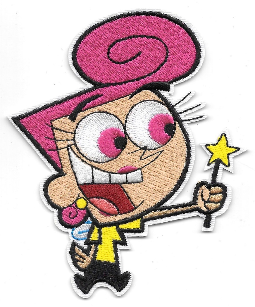 This is a 3.5″ wide x 4.25″ high new and unused embroidered patch which features the image of Wanda from the The Fairly OddParents animated TV series. It is a new, unused patch with a glue backing for easy application to a cloth surface and is stored in a smoke and pet free environment.