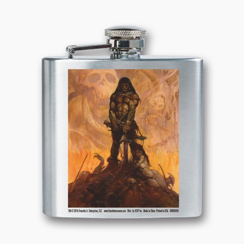 This is a 6 oz stainless steel flask featuring the image of The Barbarian art work by Frank Frazetta.