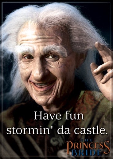 Produced in 2014, this is a licensed, large 2 1/2″ x 3 1/2″ magnet featuring the image of Miracle Max with the words “Have Fun Stormin’ Da Castle” from the famous movie The Princess Bride. This is a new, unused magnet. It has been stored in a smoke and pet free environment.