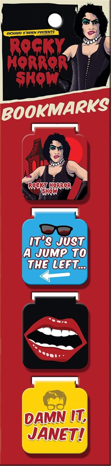 This is a licensed set of four different 1.25″ x 1.375″ magnetic bookmarks featuring images and phrases from the cult Rocky Horror Show. This is a new, unused magnet set sealed in its original package and stored in a smoke and pet free environment.