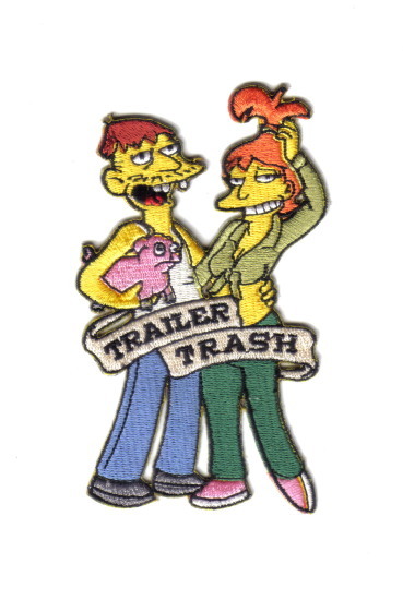 This is a new, unused, 4 1/2″ high, fully embroidered patch from the hit TV series, The Simpson’s. This patch features the characters Cletus and Brandine and comes with a glue backing for easy application to any cloth surface. It has also been stored in a smoke and pet free environment.