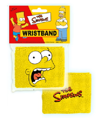 This is a yellow wrist sport band which features the face of a terrified Bart, from the hit TV show The Simpsons. It is a one size fits all, new and unused sport band, still sealed in the original packaging. It has been stored in a smoke and pet free environment.