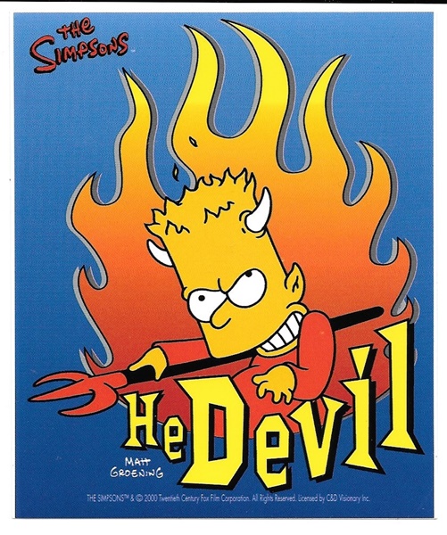 Produced by C and D in 2000 and now out of print, this is a peel off vinyl sticker decal featuring an image of an evil Bart as a He Devil from the long running animated TV series The Simpsons. We bought these direct from C and D many years ago and it measures 4.75″ x 4″ and has been stored in a smoke and pet free environment.
