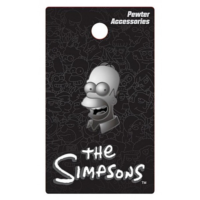 Produced by Monogram this is a 1.125″ high silver/grey pewter metal lapel pin of the 3D image of the head of Homer Simpson from the long running hit animated TV series The Simpsons. This is a near mint, unused pewter metal pin with a safety pin style back stored in a smoke and pet free environment.