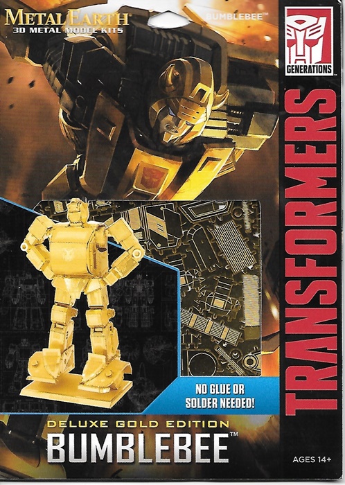 This amazingly detailed model starts as 4″ square sheets and finishes as a 3-D model. It is approximately 2.75″ tall when assembled and this one features Bumblebee from the popular cartoon, movie and comic series. This is the deluxe gold edition. The sheets contain detailed laser etching for easy removal. Complete instructions are included to show you how to pop out the pieces, bend the tabs, and connect them at the attachment points with an average assembly time of 30-45 minutes. It has been stored in a smoke and pet free environment. We also offer an optional LED base or a Solar Spinner for better display of your model.