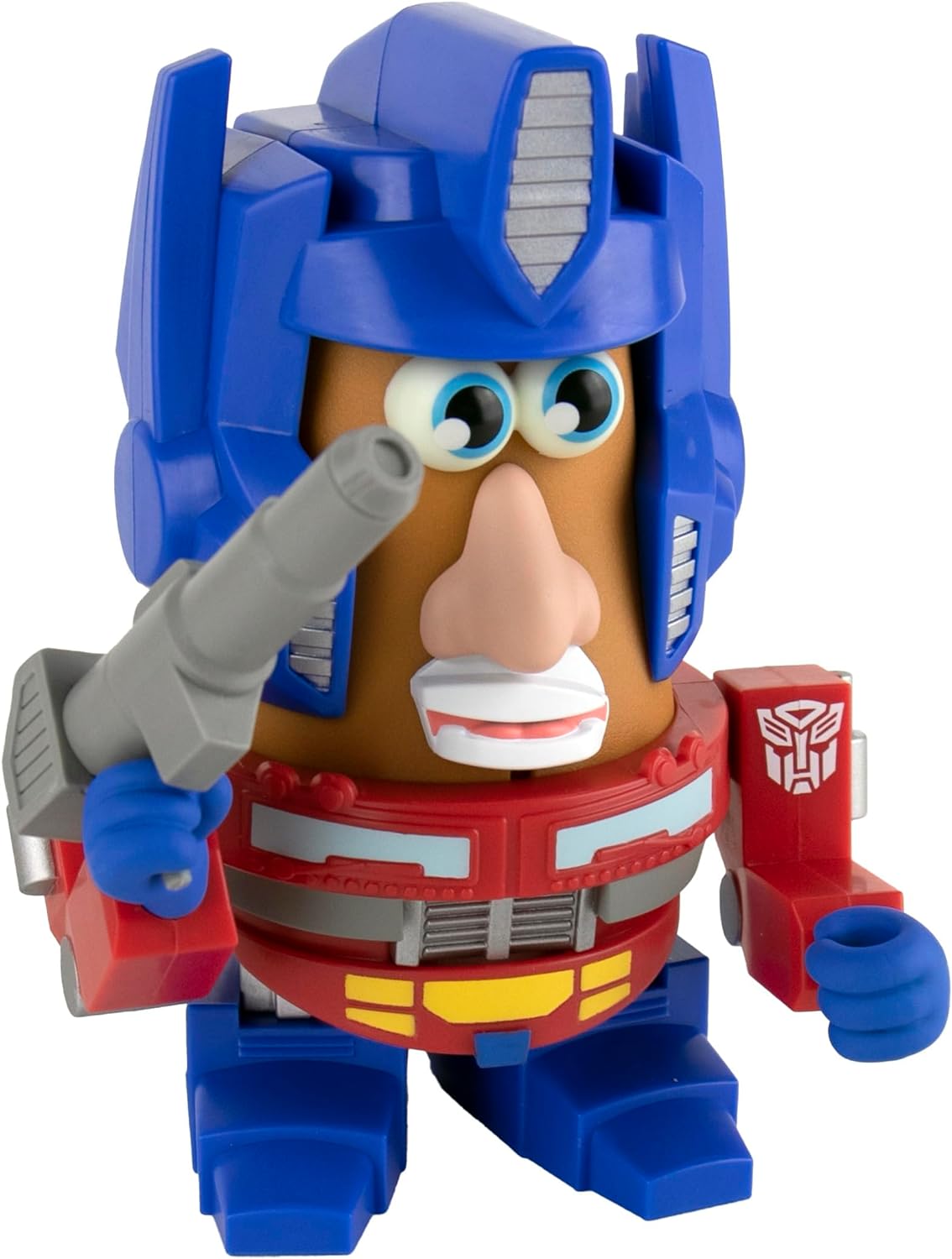 Produced by Super Impulse, this is part of their Poptaters lines of toys and features Optimus Prime from the popular cult toys, TV and movies The Transformers. Poptaters Optimus Prime is the ultimate fan mashup combining the iconic Potato Head with pop culture icons, creating hilarious, fun collectibles! This includes 11 removable, interchangeable facial and body parts including one surprise Potato Head original piece! The 4″ body nearly doubles in size when accessories are on. Purchased new by us from the manufacturer, it is stored in a smoke and pet free environment.