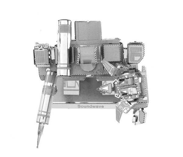 This amazingly detailed model starts as 4″ square sheets and finishes as a 3-D model. It is approximately 2.75″ tall when assembled and this one features Soundwave from the popular cartoon, movie and comic series. The sheets contain detailed laser etching for easy removal. Complete instructions are included to show you how to pop out the pieces, bend the tabs, and connect them at the attachment points with an average assembly time of 30-45 minutes. It has been stored in a smoke and pet free environment. We also offer an optional LED base or a Solar Spinner for better display of your model.
