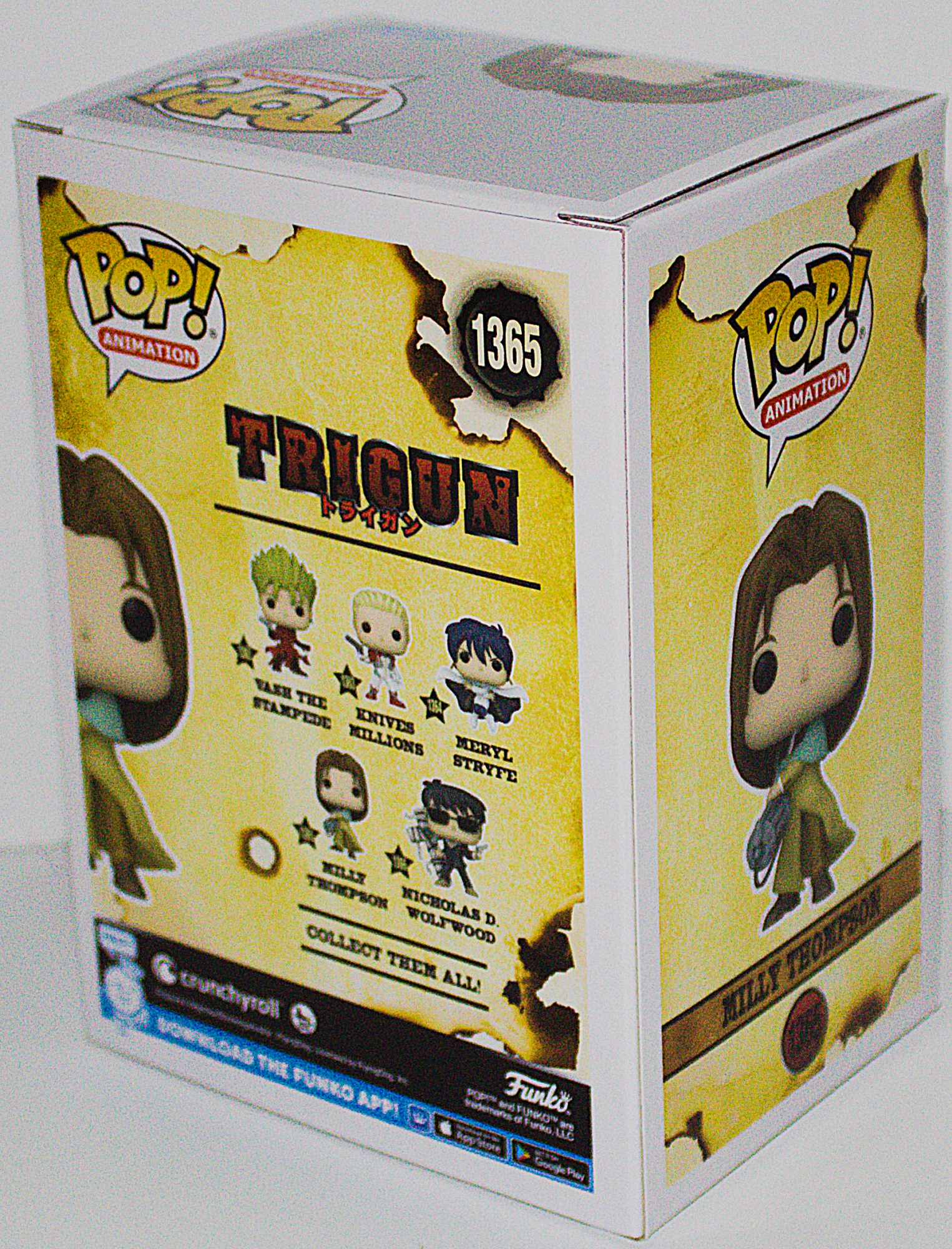 This is part of the FUNKO line of POP! vinyl figures and this series features characters from the anime/manga series Trigun measuring 3.75″ high. This comes in a sealed illustrated box with a clear plastic front that displays the toy and it stored in a smoke and pet free environment.