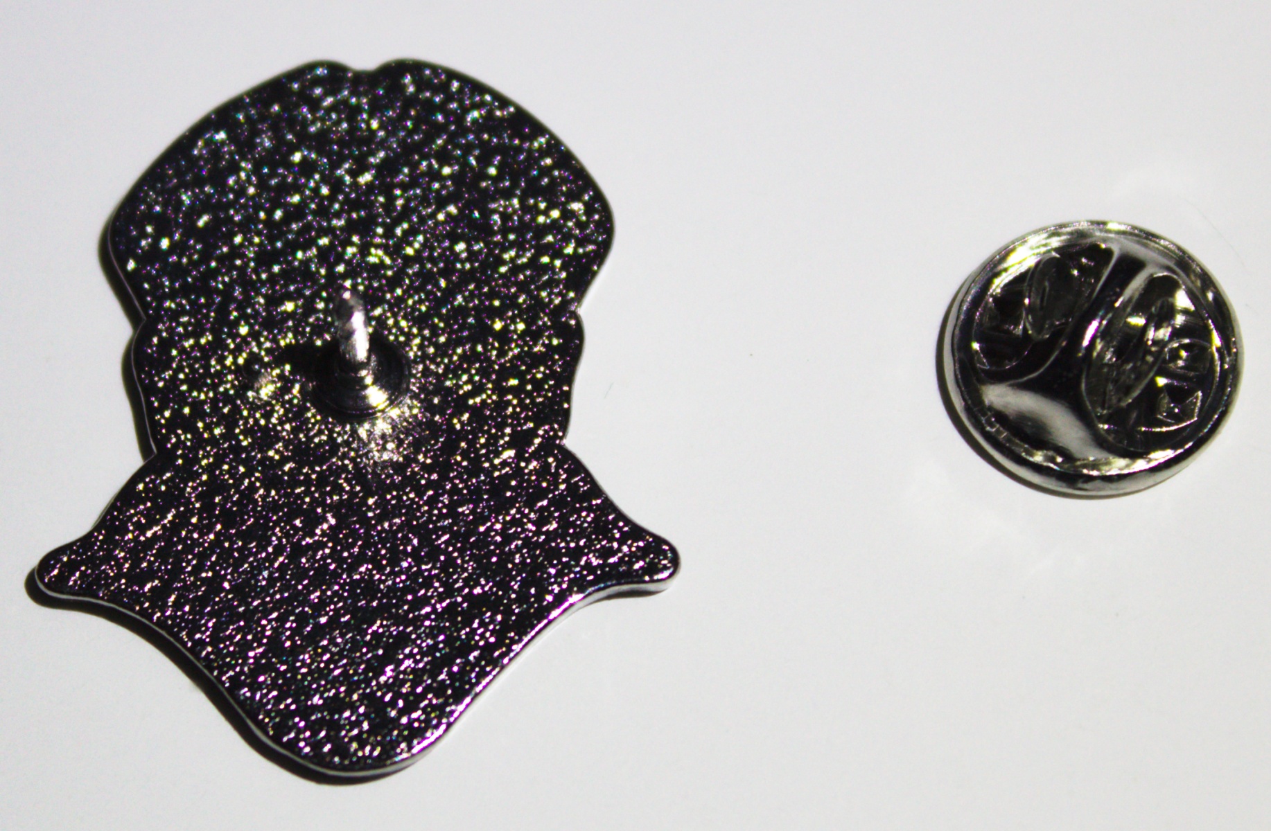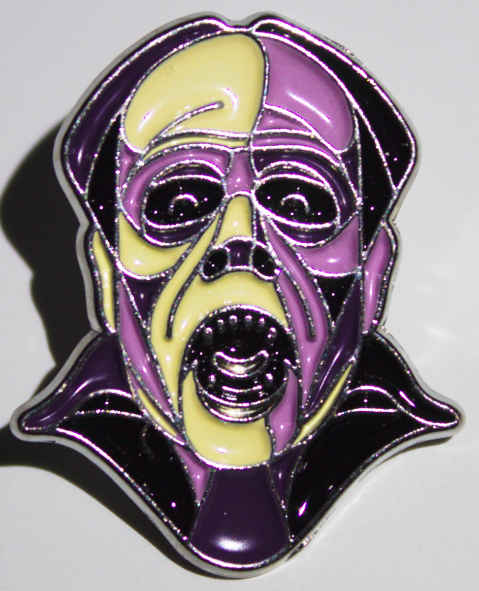 This is a 1.25″ high x 1″ wide (approximate) new and unused metal enamel pin which features the image of the face of The Phantom (Lon Chaney) from the Universal monsters 1925 movie Phantom of the Opera. This is a new, unused pin that is stored in a smoke and pet free environment.