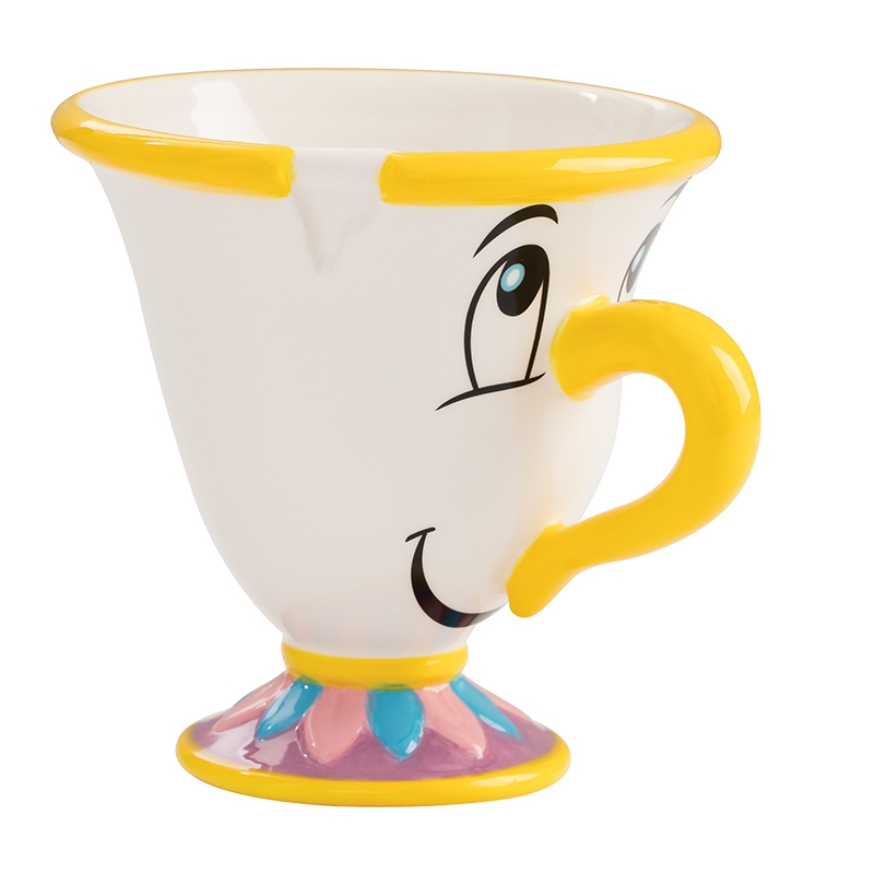 This is a multi-colored 8 ounce sculpted ceramic tea cup in the image of Chip from the animated Walt Disney movie Beauty and the Beast. It is a new and unused cup that is hand painted, comes in an illustrated box and is stored in a smoke and pet free environment. Hand wash.