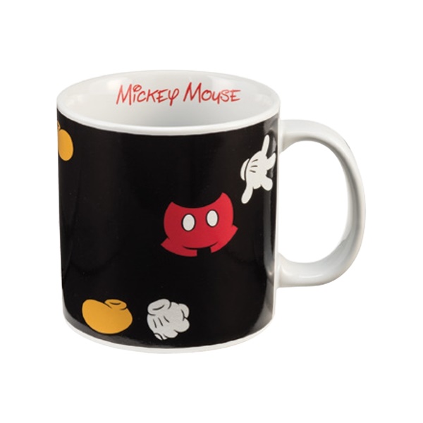 Produced in 2015 this is a new and unused stoneware 20 ounce ceramic mug covered with images of Walt Disney’s classic 1930’s Mickey Mouse. This is a heat sensitive mug so when filled with a warm liquid the red background slowly turns to black and Mickey disappears but his feet, gloves and pants remain. This is stored in a smoke and pet free environment.
