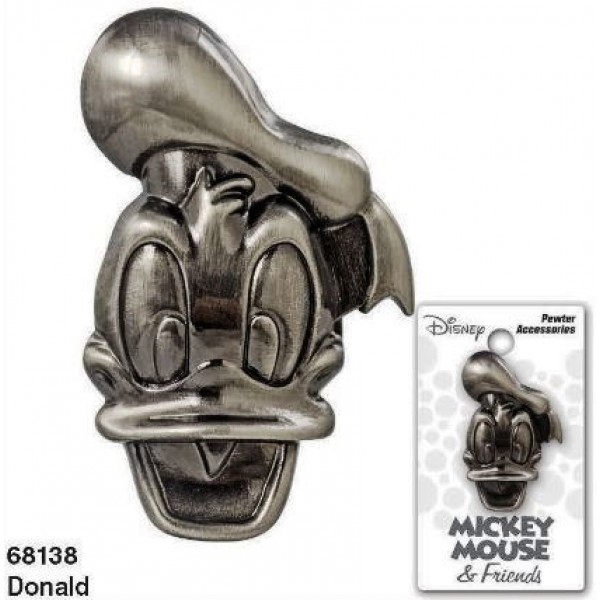 Produced in 2016 this is a licensed 1.875″ high heavy grey/silver metal pewter 3-D pin in the shape of the head of Walt Disney’s Donald Duck. This is a new unused pin still in its original packaging stored in a smoke and pet free environment.