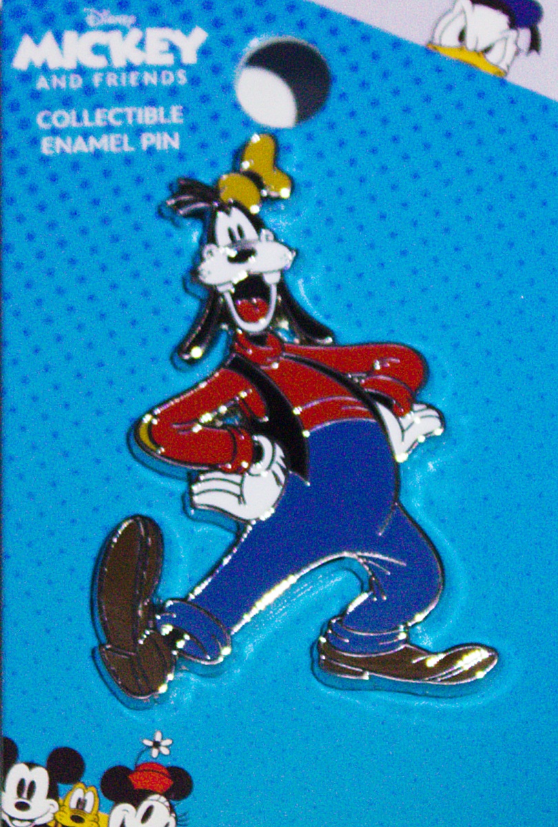 This is a licensed 2″ high x 1.375″ wide (at the bottom) pin that features the full figure of Goofy dancing from the Walt Disney animated cartoons. This is a new unused pin still in its original packaging stored in a smoke and pet free environment.