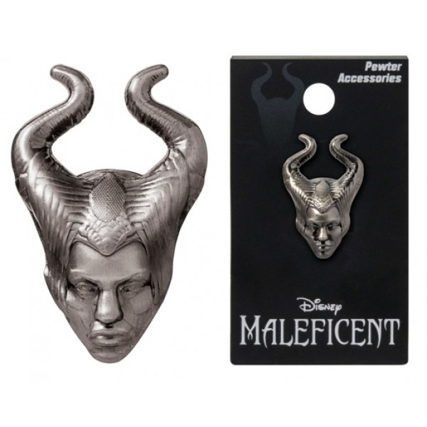 This is a licensed 1.5″ high grey/silver metal pewter 3-D pin in the shape of the head of Walt Disney’s Maleficent from the live action movie of the same name. This is a new unused pin still in its original packaging stored in a smoke and pet free environment.