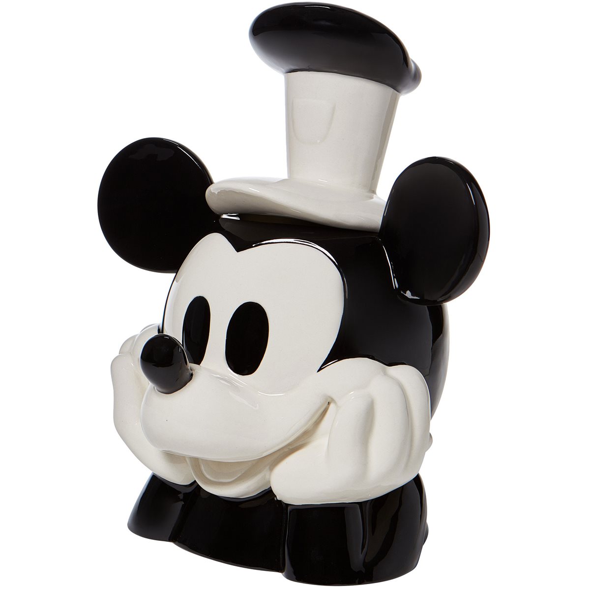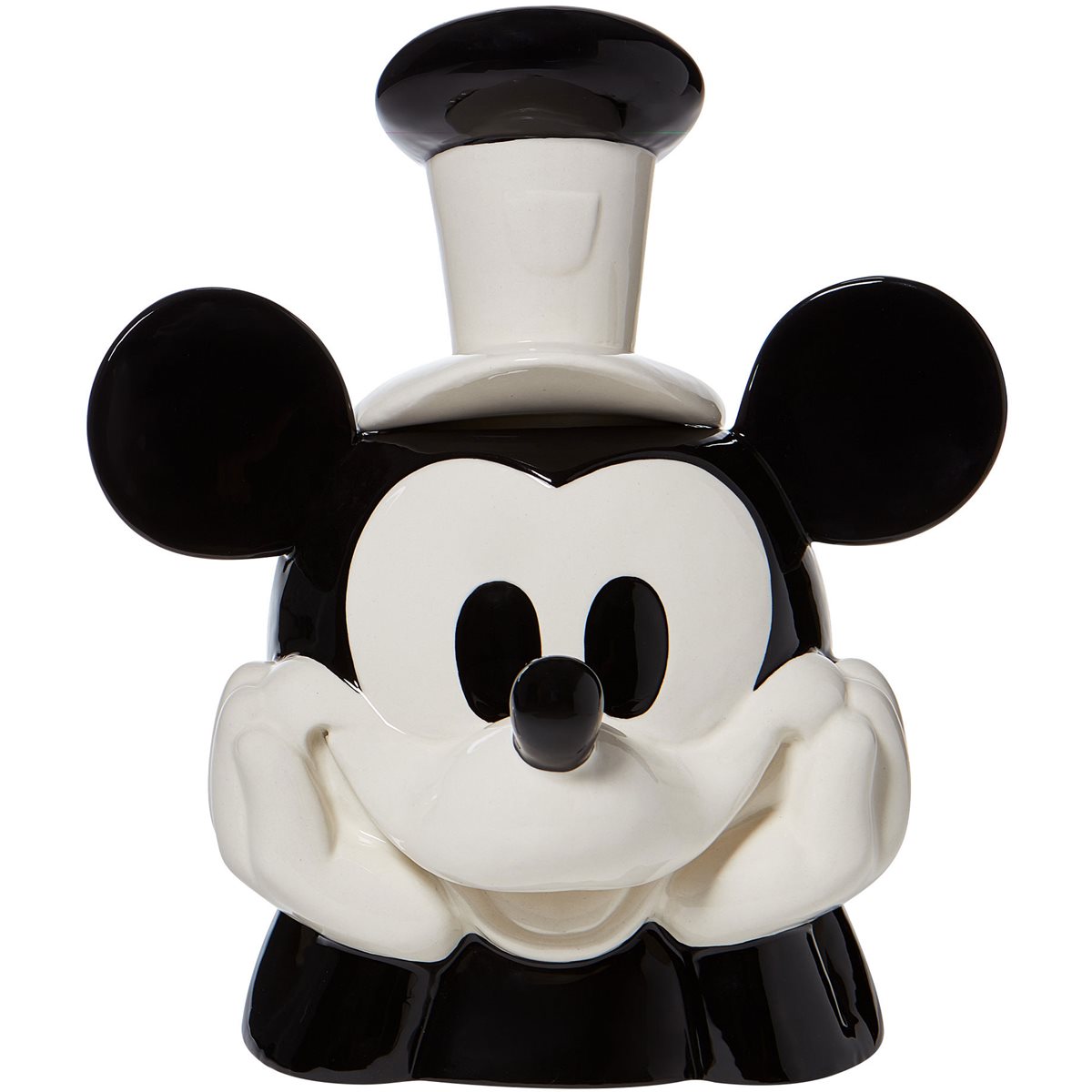 From the original Walt Disney animated cartoon that introduced Mickey Mouse to the world is this delightful cookie jar featuring Mickey in role as Steamboat Willie. In his first moment in animation, Mickey Mouse enters the Disney landscape as Steamboat Willie and never looked back. Donning his vintage conductor cap and black & white hue, the mouse wears a smile as he harbors your cookie pile. This jar will steer your sweets to freshness. This high quality 11″ high stoneware cookie jar is the perfect addition to any Disney lover’s home. It is hand crafted in ceramic and hand painted by skilled artisans with Mickey’s hat as a removable lid. Hand wash only. This is not dishwasher or microwave safe. It is new and unused, ships in an illustrated box and is stored in a smoke and pet free environment.
