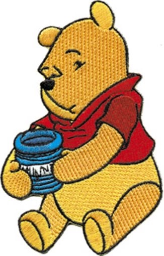 This is a 4″ high mint, embroidered patch, now out of production, which features the image of Winnie the Pooh sitting with a jar of honey, from the animated movie and cartoons. This is a new, unused patch that has a glue backing for easy application to hats, shirts, jackets and bags and is stored in a smoke and pet free environment.