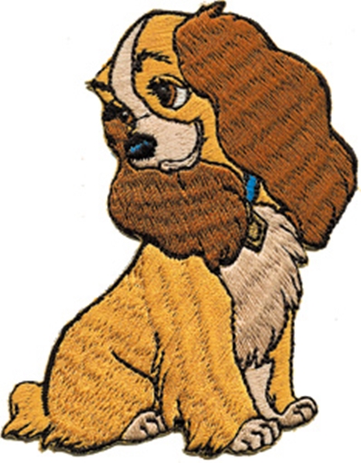 This is a 3 1/4″ high mint, embroidered patch, now out of production, which features the figure of a smiling Lady, from the classic Disney animated film Lady and The Tramp. It has a glue backing for easy application to hats, shirts, jackets and bags and is stored in a smoke and pet free environment.